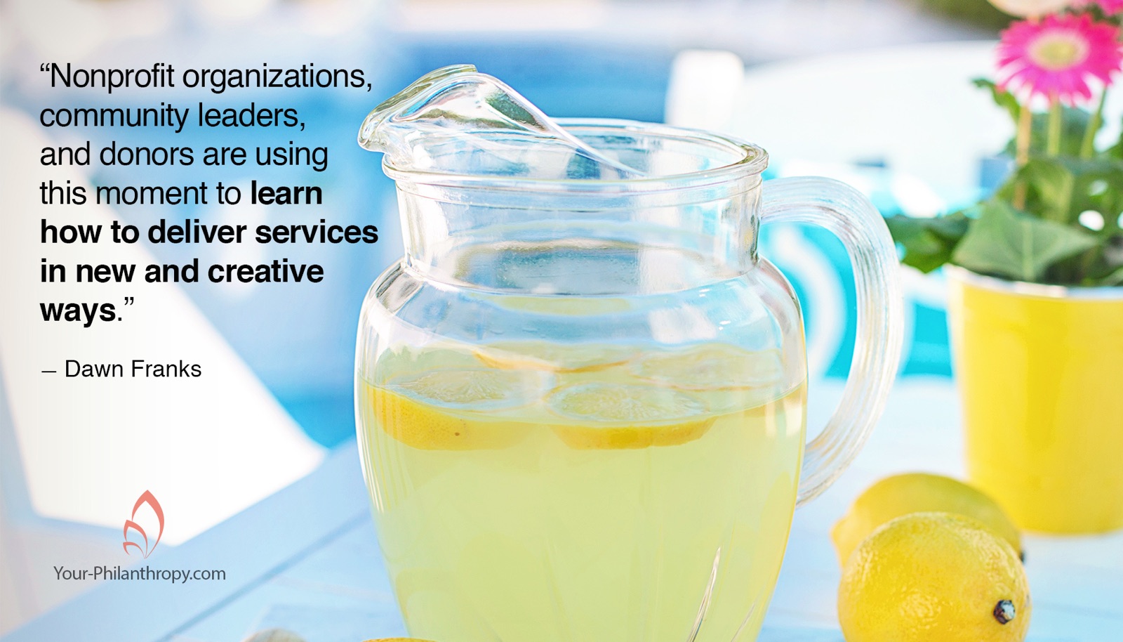 Nonprofit organizations, community leaders, and donors are using this moment to learn how to deliver services in new and creative ways. Some could be described as Pollyannaish, every day making lemonade from lemons.