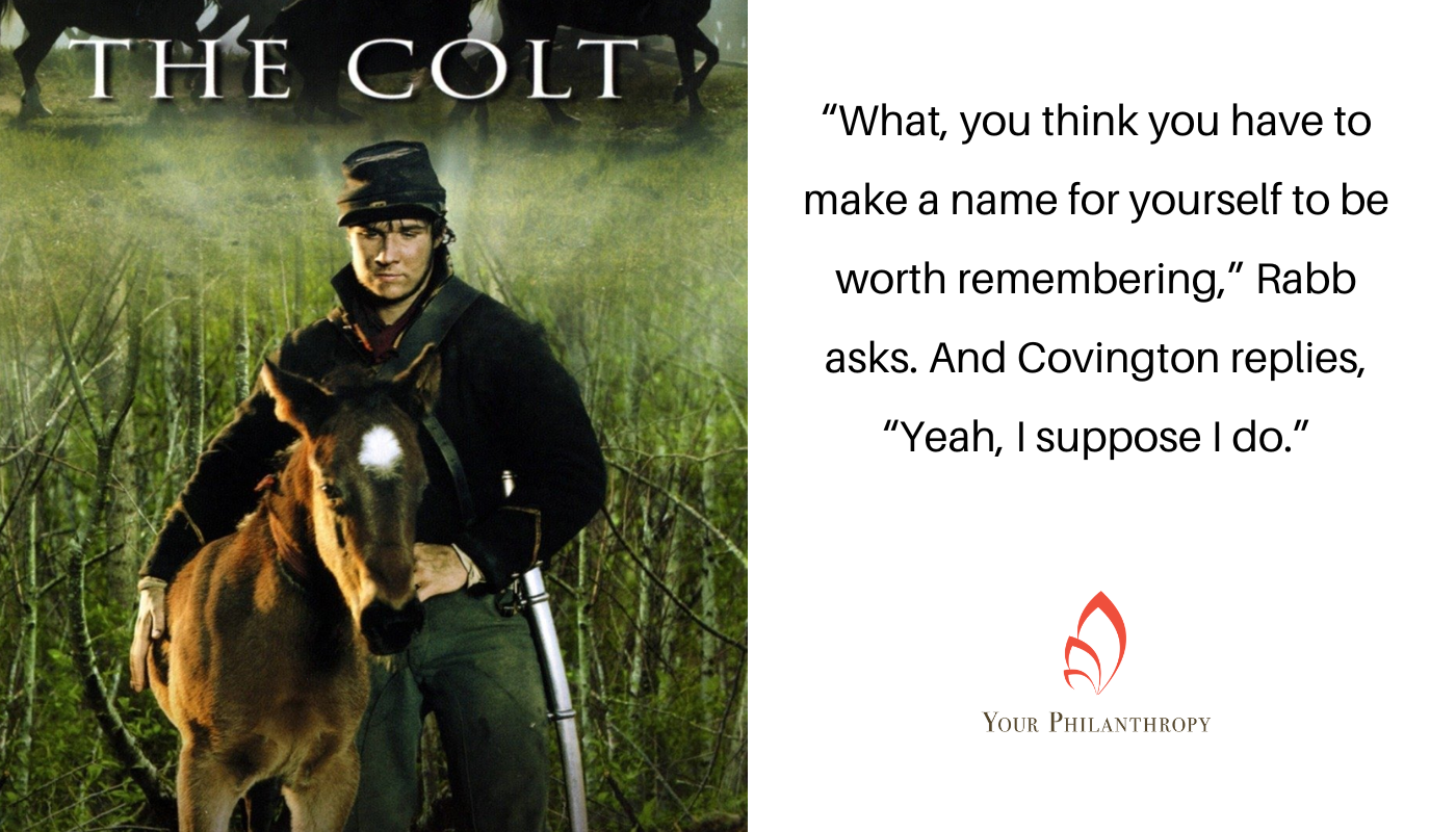 “What, you think you have to make a name for yourself to be worth remembering,” Rabb asks. And Covington replies, “Yeah, I suppose I do.”