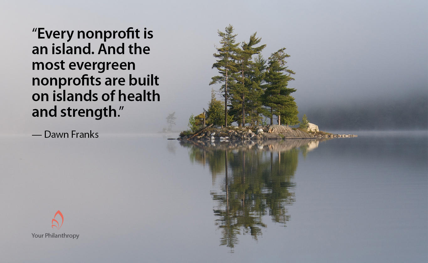 Years ago, I answered, “They survive because the need is great; they’re doing all they can and just need a few big donors to solve the funding problem.” Today is a different answer. Every nonprofit is an island. And the most evergreen nonprofits are built on islands of health and strength.